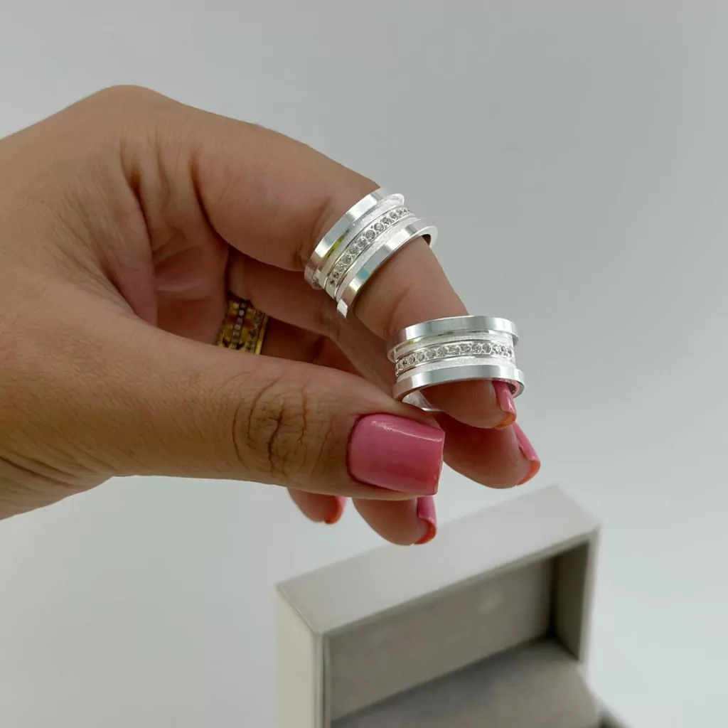 Por exemplo; acrescentar/remover pedras, solicitar modelo liso, largura maior e muito mais..