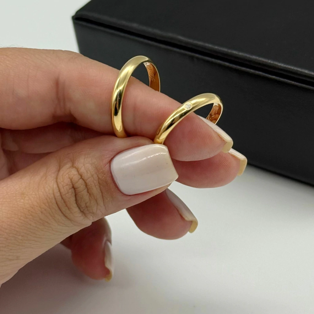 Metal: Aliança em prata legítima 950 com banho de Ouro 18k.