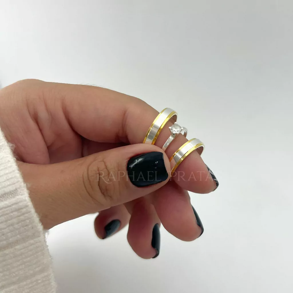 Metal: Aliança em prata legítima 950 com filetes no banho de Ouro 18k.