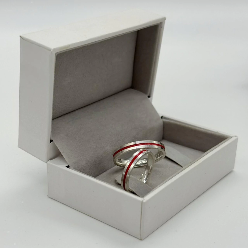 Metal: Aliança em prata legítima 950 com filetes de resina colorida (A cor pode serf alterada).