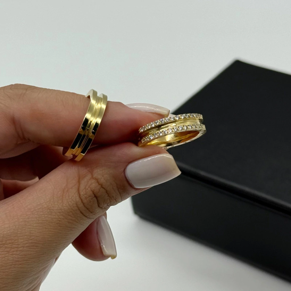 Por exemplo; acrescentar/remover pedras, solicitar modelo liso, largura maior e muito mais..