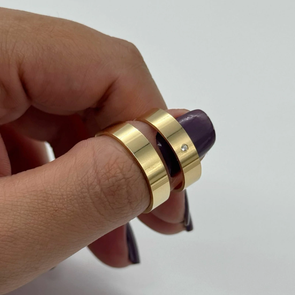 Metal: Aliança em prata legítima 950 com banho de Ouro 18k. | Com 1 pedra de zircônia em um dos aros.