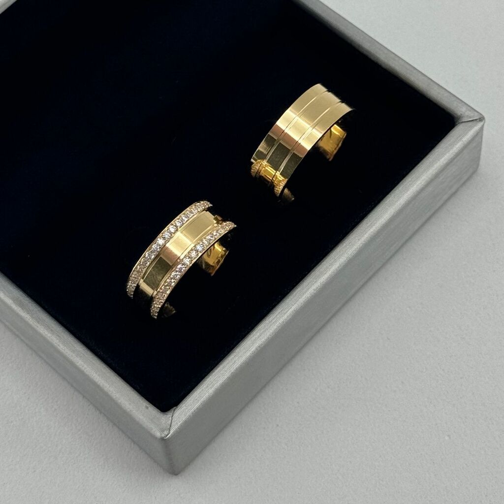 Largura: Aproximadamente 6mm. | 01 aro com duas fileiras completas de pedras | 02 aro sem pedra.