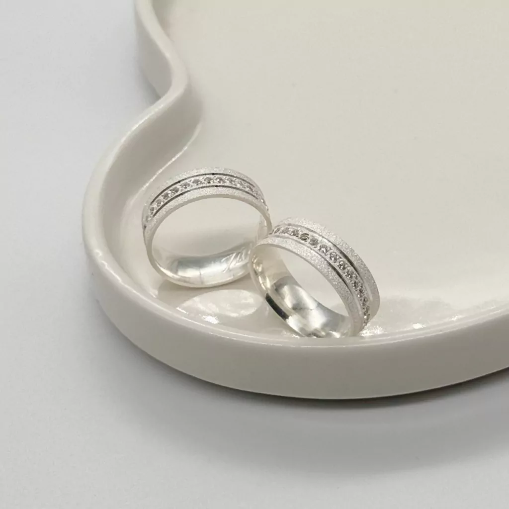 Metal: Aliança em prata legítima 950. | 01 aro com uma fileira completa de pedras em zircônia | 02 aro sem pedras.